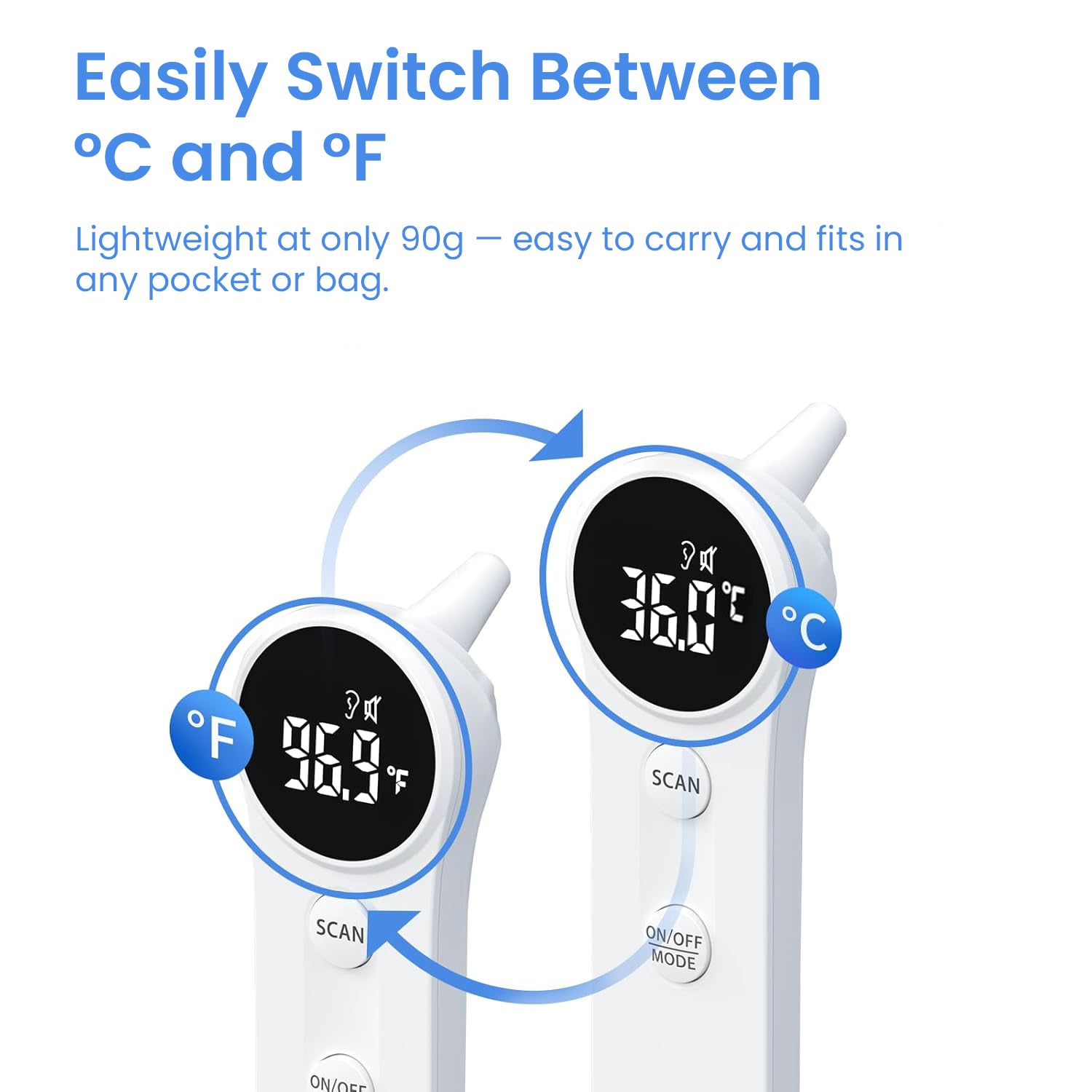 Dual Measurement Modes: Switch easily between Forehead and Ear mode for flexible, accurate temperature detection.
